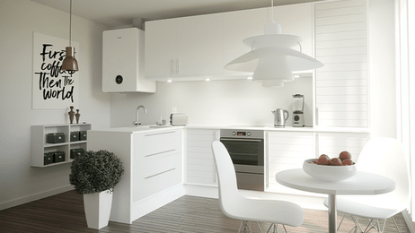 Čisté bílé provedení a barevný LCD displej umožňují instalaci spotřebiče i v obytných prostorech.